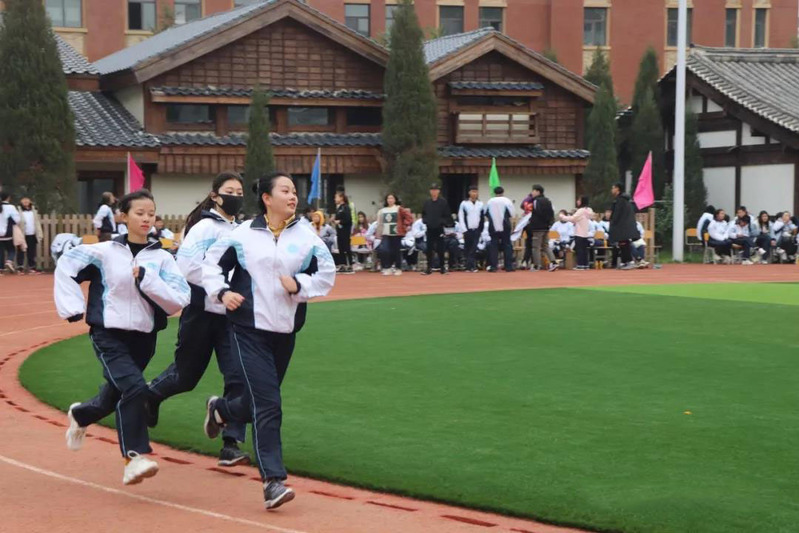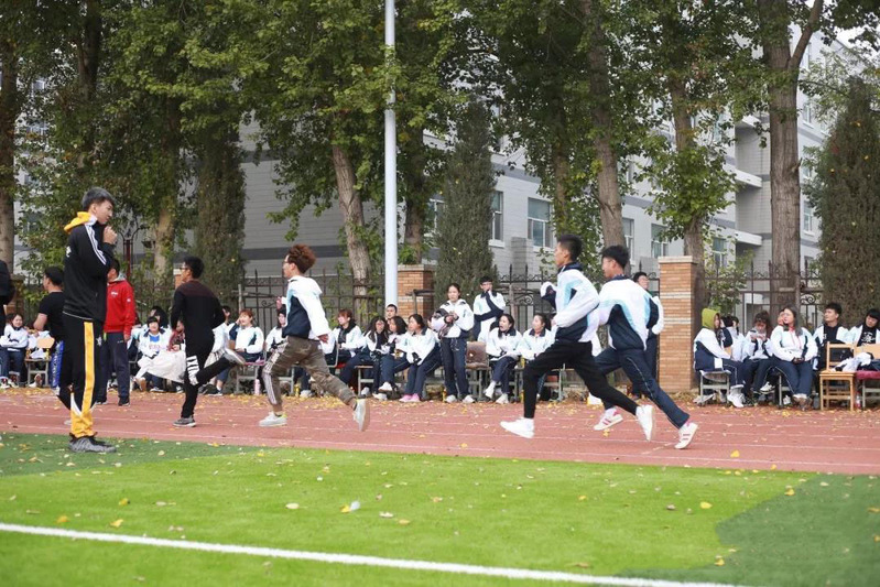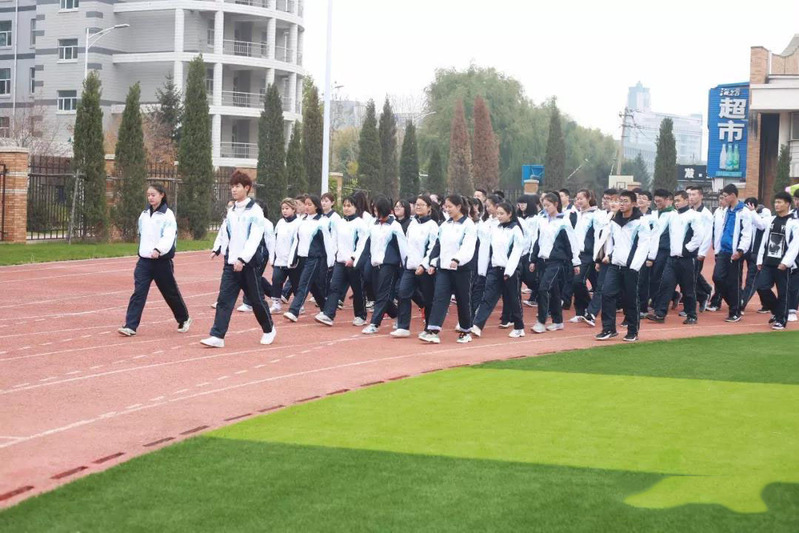 蓝天白云下,绿色操场上。学子们青春激扬的画面美成了一幅画。
