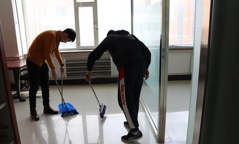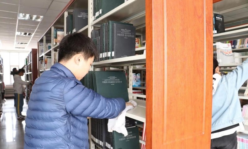 青协主席史源带领社员走进图书馆,清扫每个角落,整理书籍,为打造我们整洁的学习环境出一份力。
