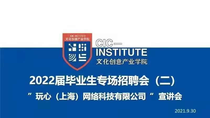2021年9月30日下午13:00,文创学院2022届毕业生专场招聘会(二):“追光有你 未来可期”在小报告厅举办,本次专场招聘会成功邀请到玩心(上海)网络科技有限公司来我院进行招聘宣讲,我院动画专业、数字媒体艺术专业、数字媒体技术等专业200多名毕业生参加。